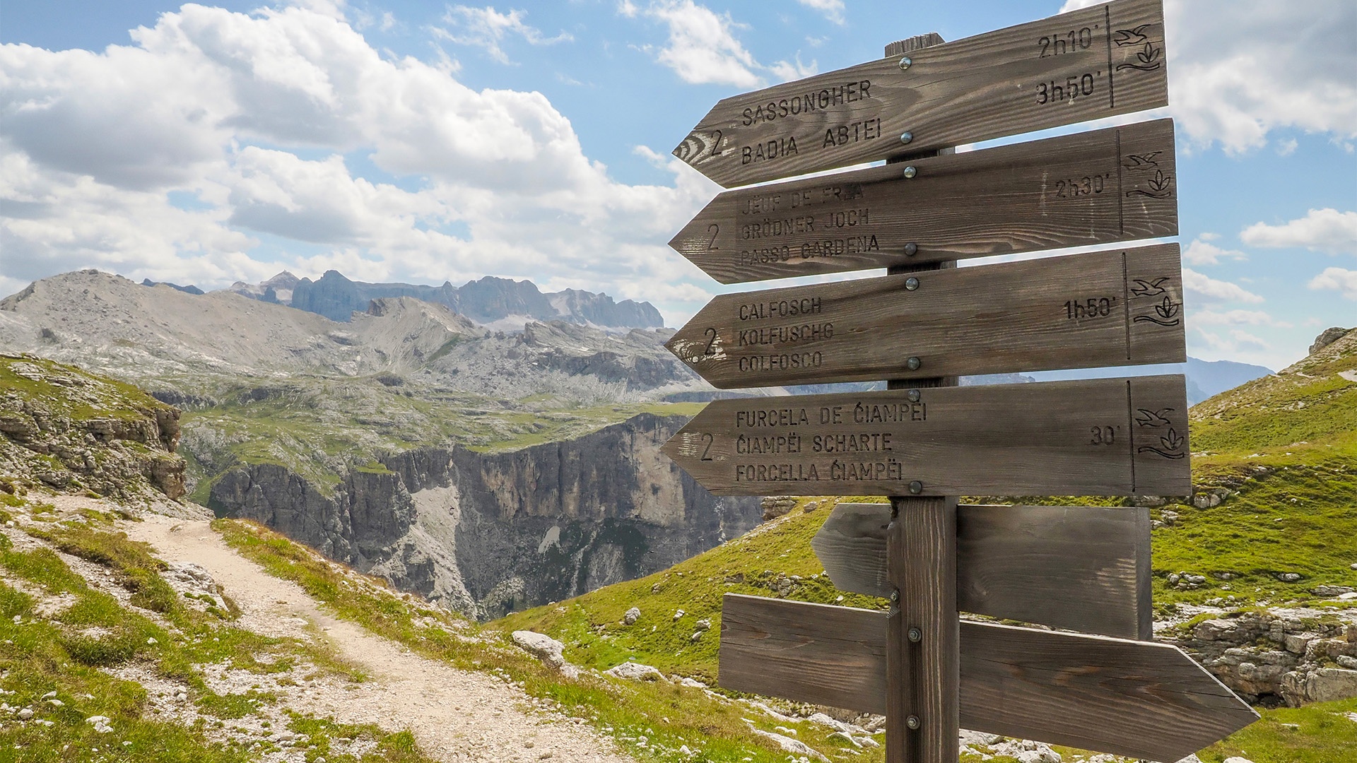 Route: La Villa (1.420 m) - Plan de Sponata (1.750 m/Sesselbahn) - Rifugio Gardenaccia (2.050 m) - Forcella Gardenaccia (2.548 m) - Rifugio Puez (2.475 m) - Forcella Ciampai - Colfosco - Corvara (1.550 m)