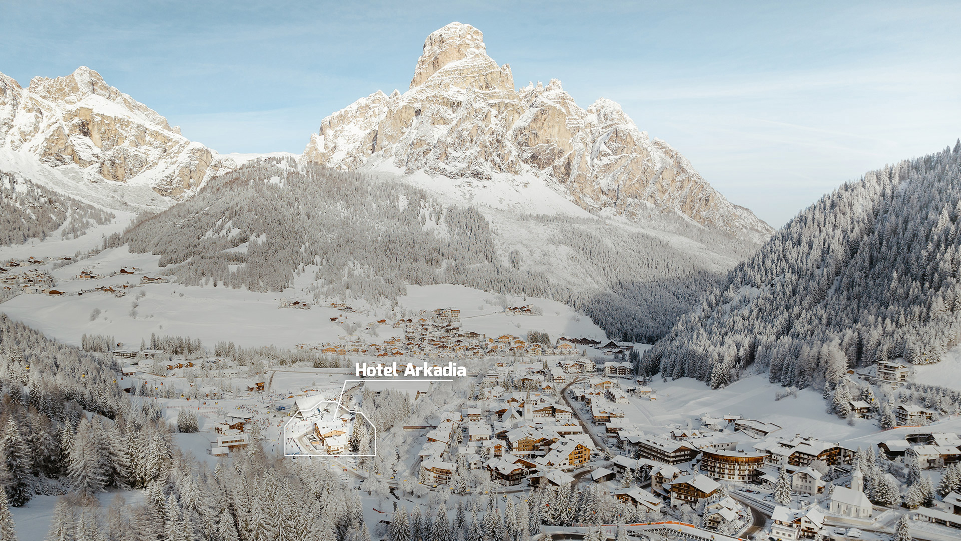 L’Arkadia si trova in una posizione perfetta per gli sciatori: a pochi metri dalla cabinovia Boé e dalla cabinovia Borest, nel centro dell’immenso carosello sciistico del Dolomiti Superski.